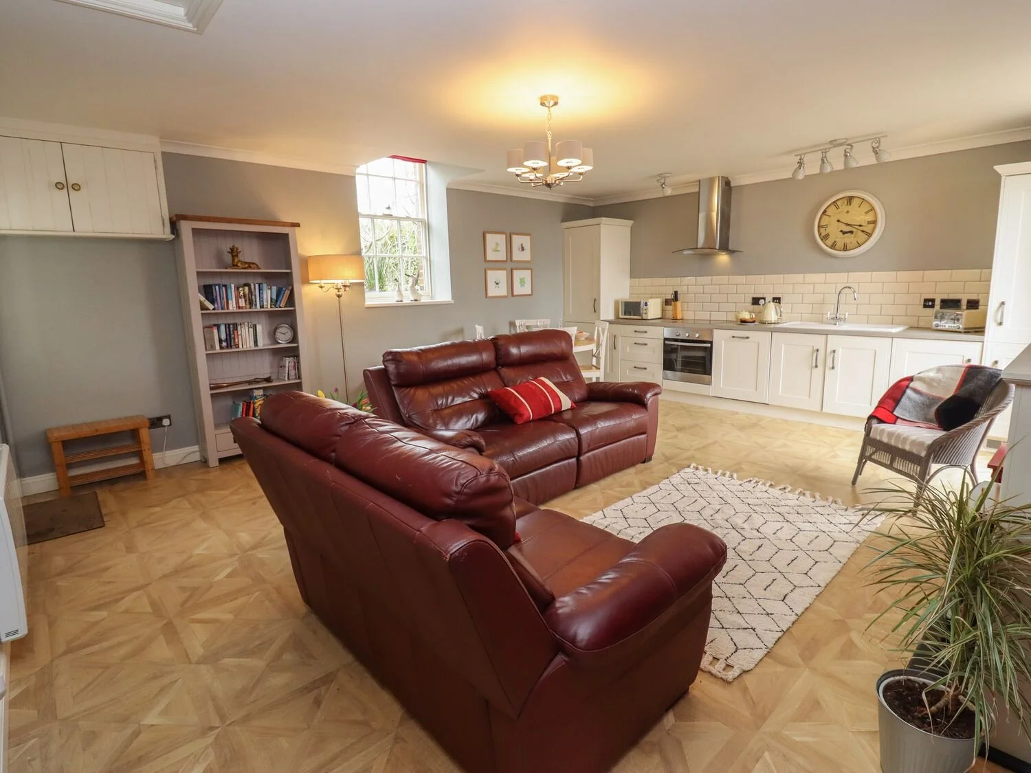 The Carriage Apartment comprises 2 bedrooms, one with king double bed and one with 2 single beds, lounge/diner, semi open planed kitchen with breakfast bar and bathroom with rain head shower.